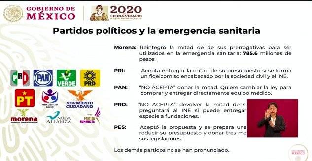 - PAN: NO ACEPTA donar la mitad. Quiere cambiar la ley para comprar y entregar directamente equipo médico.